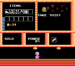Huh. We'll take the $10. Interestingly, power is only $5 in all other shops, making me wonder once again, WHY IS THIS GUY HELL BENT ON RIPPING US OFF? He must hate the princess, because I cannot afford to rescue her if he's going to continue to fuck me every other time I enter his shop. Times are tough all over, buddy.